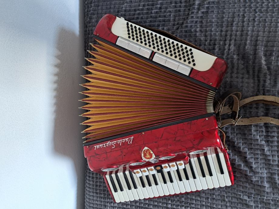 Prodajem harmoniku Paolo soprani. 80 basova, 7+2 registra, u odličnom stanju korištena samo za kucnu upotrebu. Kontat broj 0️⃣9️⃣2️⃣2️⃣5️⃣8️⃣3️⃣3️⃣0️⃣5️⃣