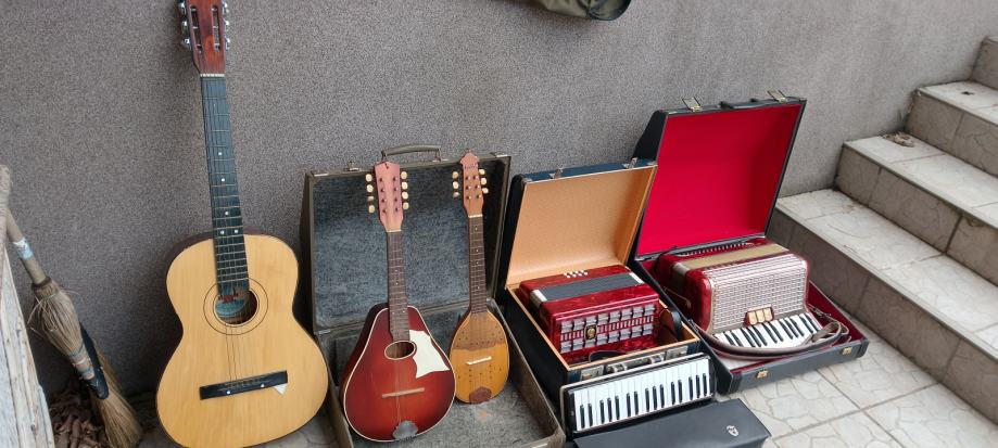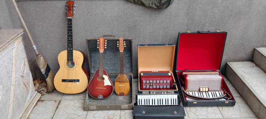 Prodajem obiteljsku kolekciju harmonika (2 komada - Hohner Concerto 2, Weltmaister manja) + ostalo sa slika poput gitare, tamburica, kovcege za instrumente i sve ostalo sa slika dajem GRATIS ozbiljnom kupcu, prodaja je iskljucivo u setu 850E.
