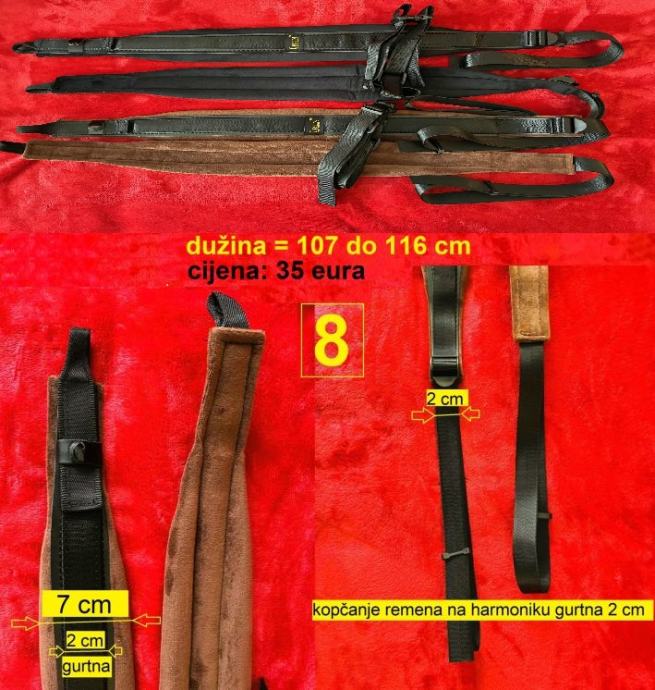 - Prvi dojmovi novih vlasnika su dobri, a ja, iz iskustva, kao trajne mogu preporučiti remene pod brojem 8 ojačane gurtnom cijelom dužinom i kopčanje sa gurtnom koja je puno izdržljivija i od kože, a pogotovo od umjetne kože (eko kože). Imao sam priliku vidjeti slične na Roland električnim harmonikama stare i 20-30 godina ni jedan nije imao oštećenja niti je ikada mijenjan.