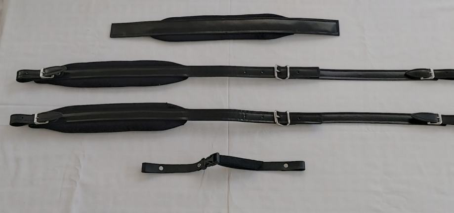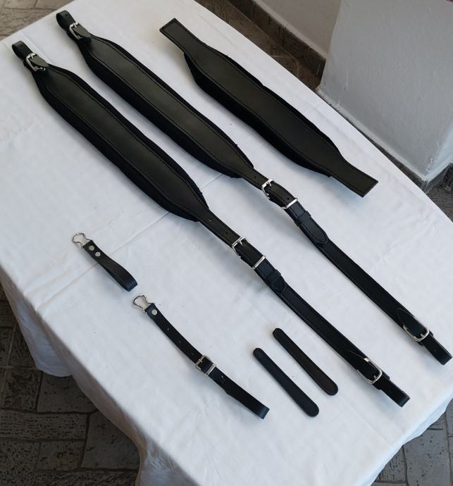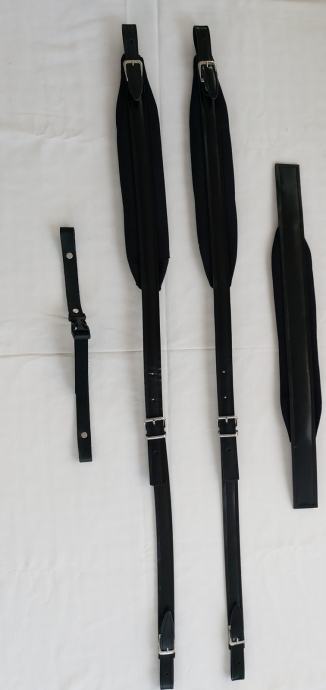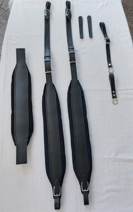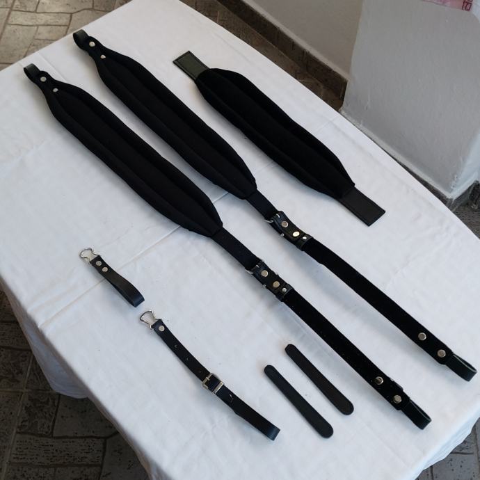 Prodajem komplet kvalitetnih profesionalnih remena za harmonike 48-140 basova. 6 cm za 48 -80 bass. 10 cm za 96-140 bass. Komplet sadrži dva remena za ramena, bas remen, poprečni leđni remen sa metalnim kopčama i 2 remena za mjeh. Širina remena je 6 i 10cm, materijal prava koža, crna boja....