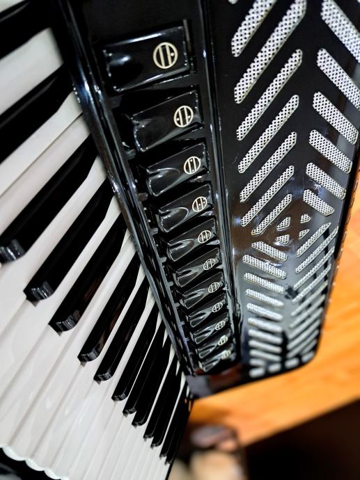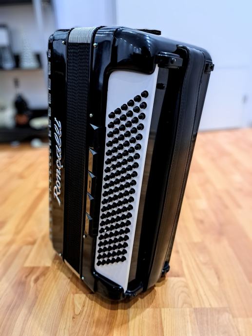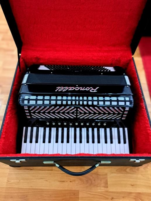 Roncalli ITALIA, original talijanska, 120 basova, četveroglasna s pikolom u desnoj, peteroglasna u lijevoj. Stara dvije godine, perfektno stanje, u kompletu s tvrdim koferom.