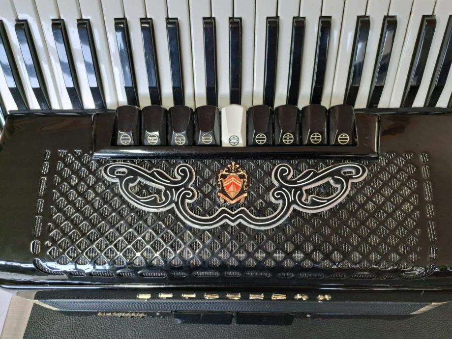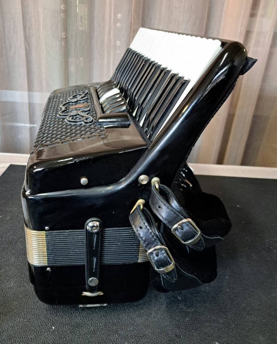 Prodaje se talijanska, četveroglasna harmonika Scandalli 9+2 120b. Harmonika je u dobrom stanju te se na harmonici nalaze novo remenje (leđa+bas) te nov jastučić za mijeh. Uz harmoniku dolazi i nova torba.