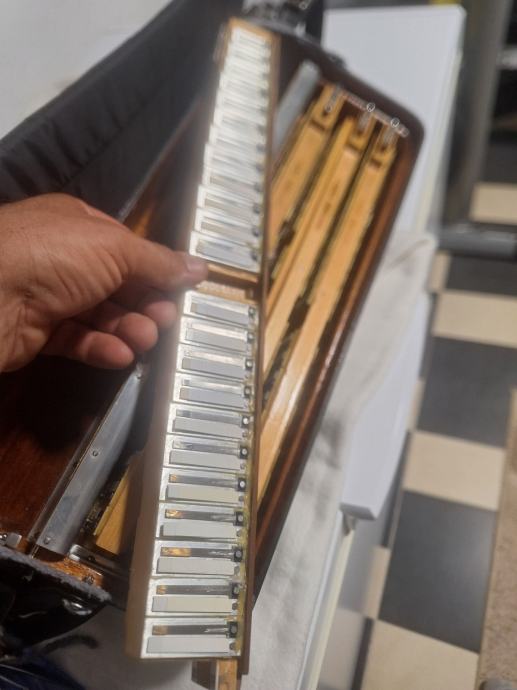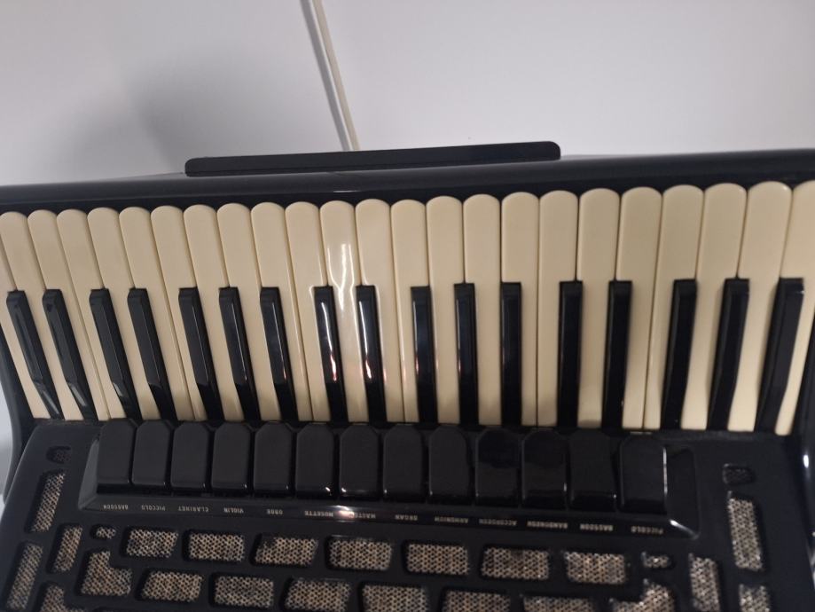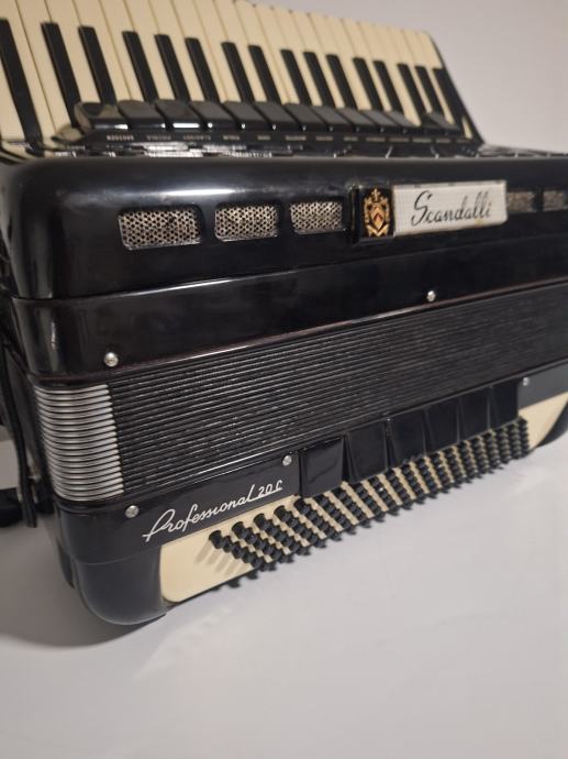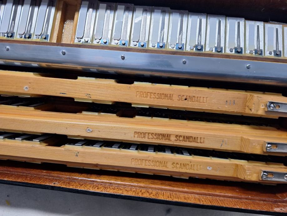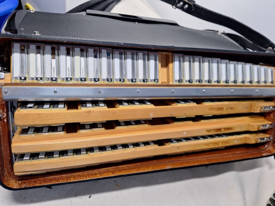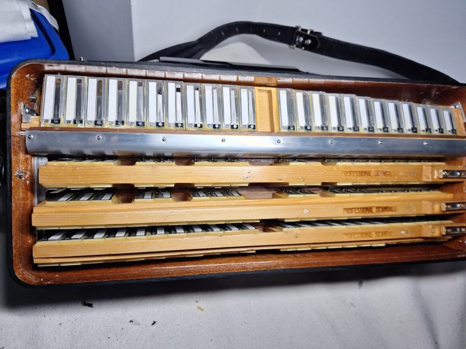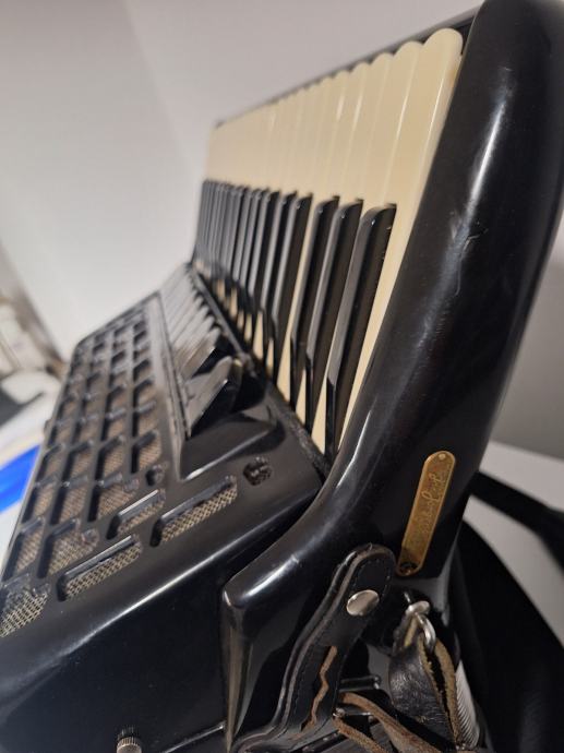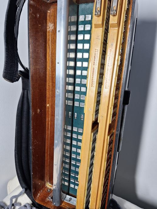 Na prodaju kabinska harmonika 1+3 jedinstvena kao takva sa malim korpusom19,5x47(vjerojatno i jedina) Scandalli proffesional 20c 13+1+6 u u tvorničkom stanju, proizvedena sredinom 50ih u zlatno doba Scandallija!Fantastičan zvuk,basson u kabini,bijeli potpisani faseni! Brza i plitka tipka,dihtacija dobra,uski korpus 19,5x47,,težina 11,5kg!pogledaj moje ostale oglase!!!