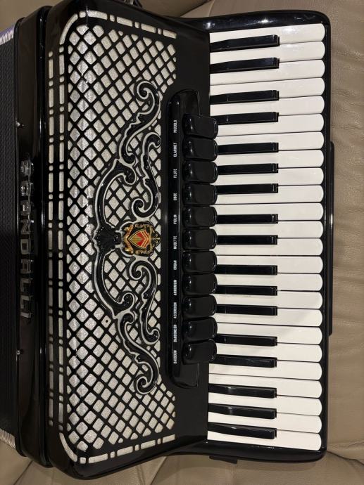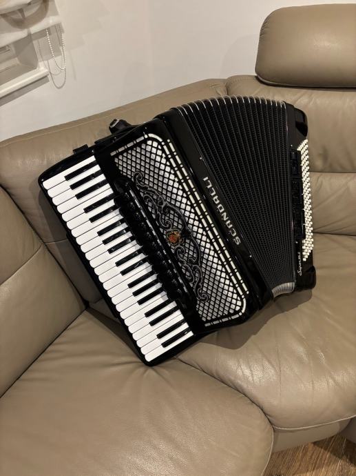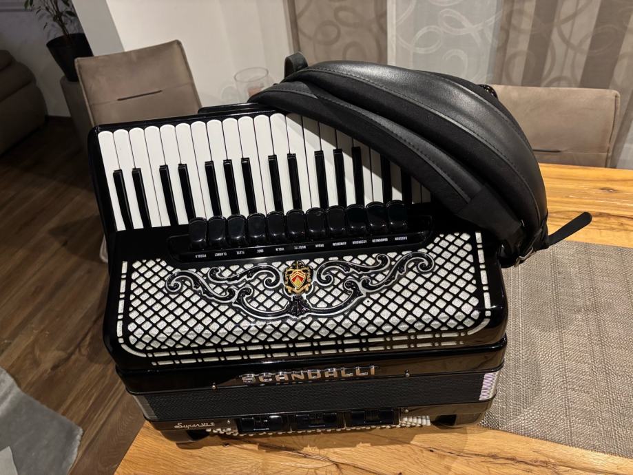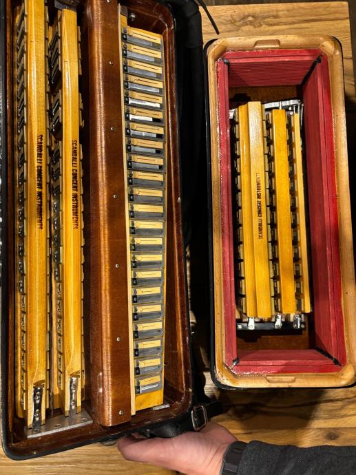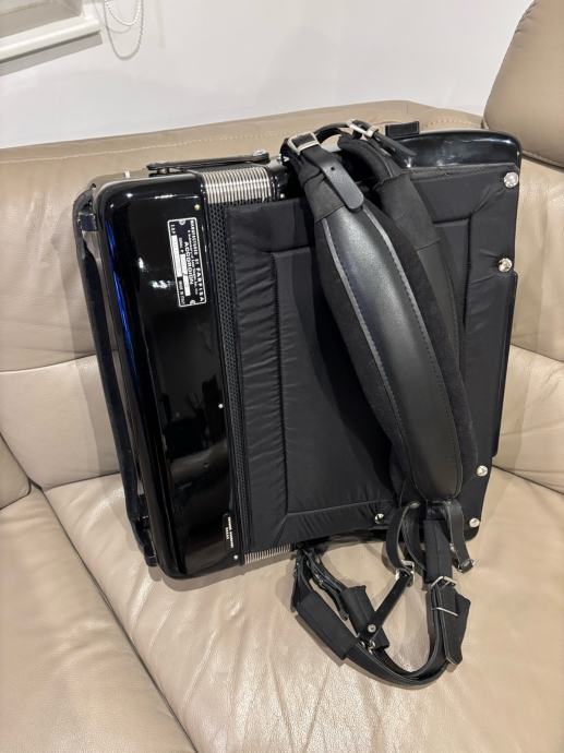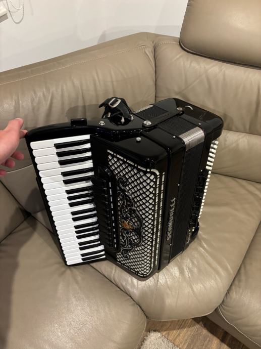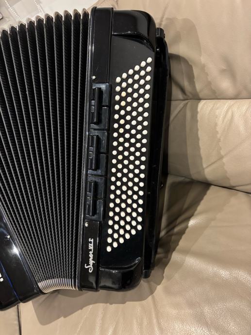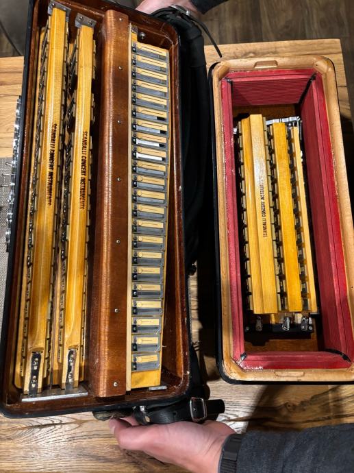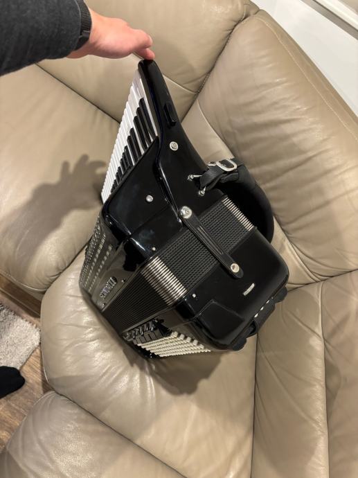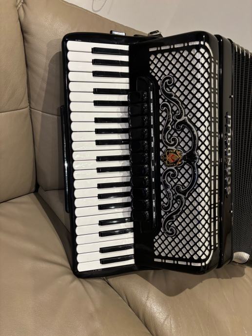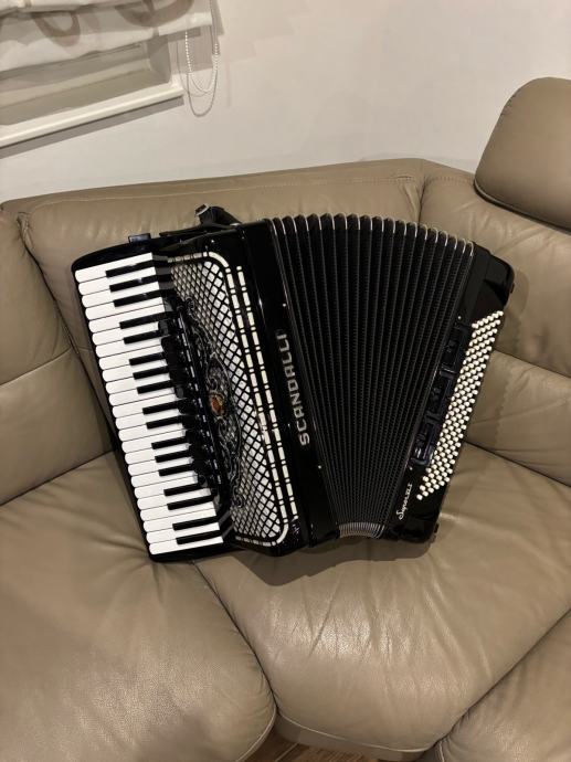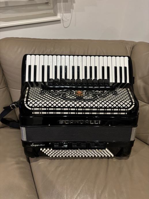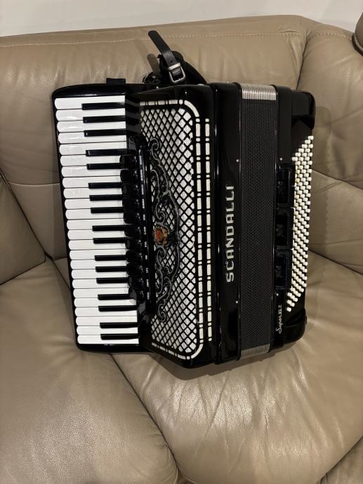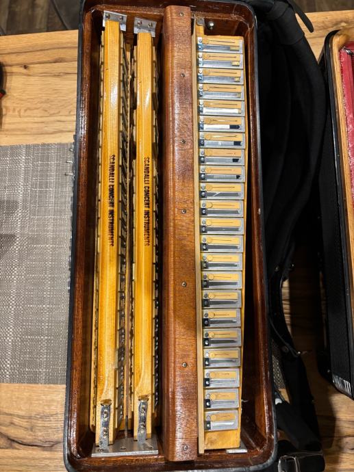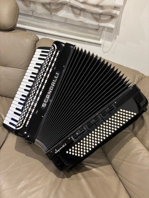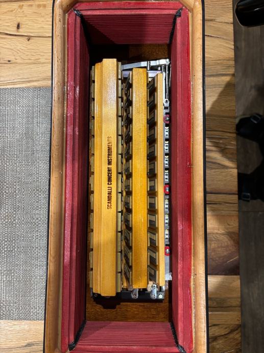 Prodajem vrhunsku harmoniku Scandalli Super 6T proizvadena pocetkom 1970-tih, kvalitetan i fini ton,120 basova,11+master sastrane+bradni registar u primu i 9 registra u basu, sa koferom i sirokim remenima.Harmonika je u odlicnom stanju,jako sacuvana,o kvaliteti i tonu nemoram puno pisti,zna se kod ove harmonike,(vidi se na slikama iznutra stari faseni ,staro drvo sa potpisom.Sve original…vase je da dodjete,isprobate i uvjerite se sami.