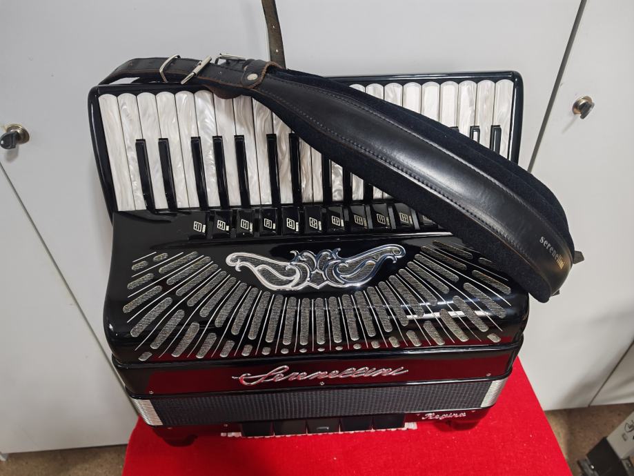 Serenellini 96 basova, dupla kabina sa piccolom u stanju kao nova.Lagana cca 10,00 kg.Nova je u Franc musik shopu 5900.