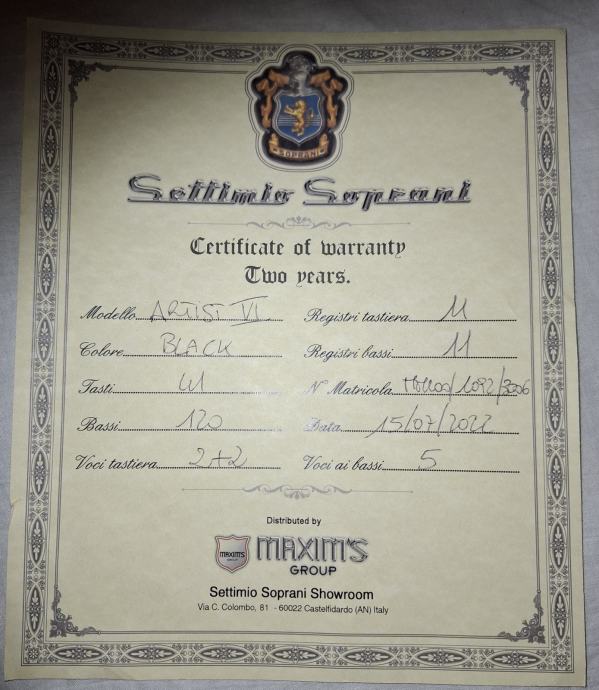 Prodajem harmoniku Settimio Soprani ARTIST VI