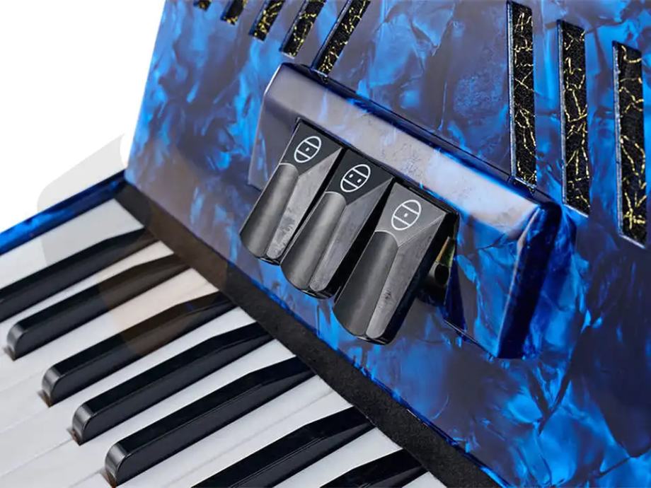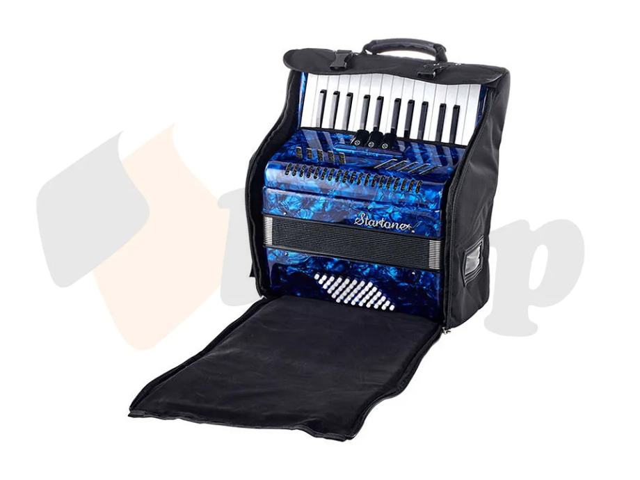 Dvoglasna harmonika, 3 registra, 48 basova, 26 tipki. Težina 6,1 kg. Dimenzije 38x18x35 cm. Dolazi s kvalitetnim koferom i remenjem.