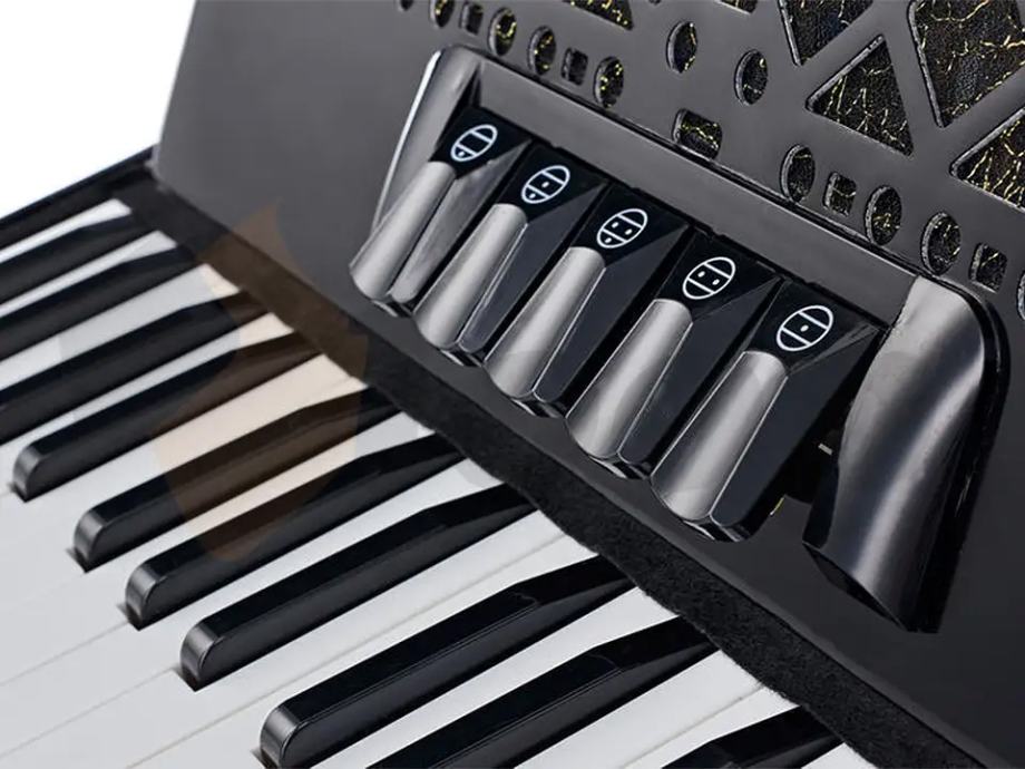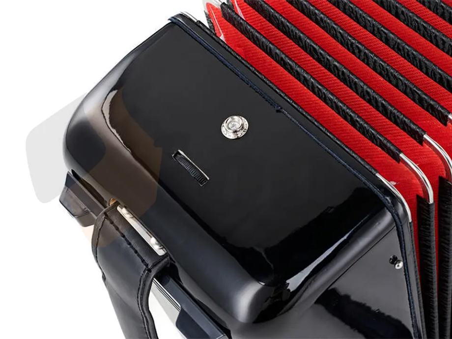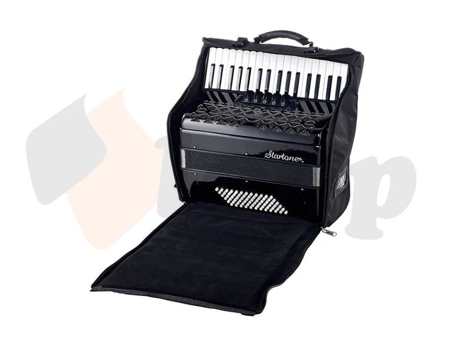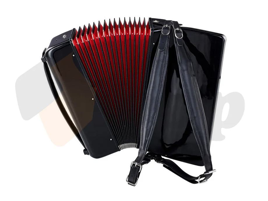 troglasna harmonika, 5 registra, 72 basa, 34 tipki. Težina 7,7 kg, dimenzije: 39 x 19 x 43 cm. Dolazi s kvalitetnim koferom i remenjem. Garancija 2 godine.