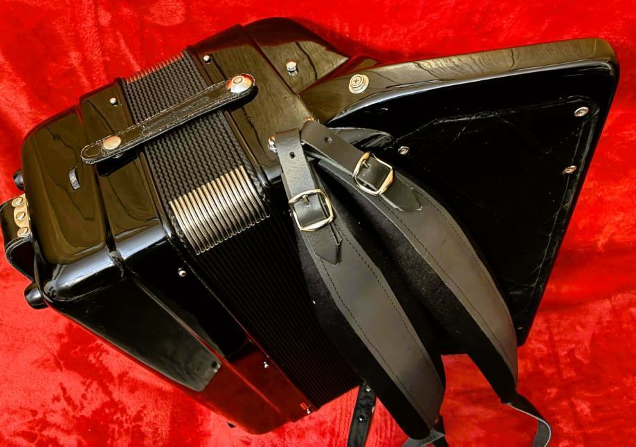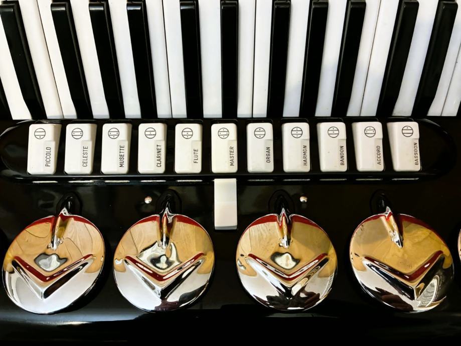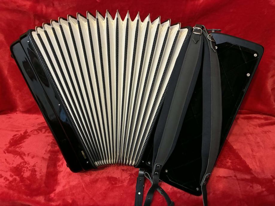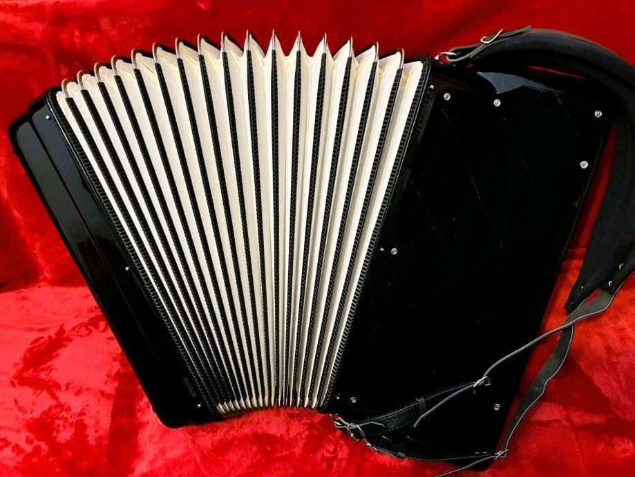 Talijanska originalna harmonika, jako dobro očuvana - kao nova, nigdje ni jedne ogrebotine sve se sija kao da je jučer izašla iz tvornice, prekrasnog tona i mehanike, vizualno, tehnički i tonski izvrsna, ugodnog tona, dihta, štima, ravne plitke i brze klavijature - udobna i jednostavno zove na sviranje, teško je prestati kada počnete svirati, s njom svaki harmonikaš mora dobiti volju za sviranje i napredovanje.