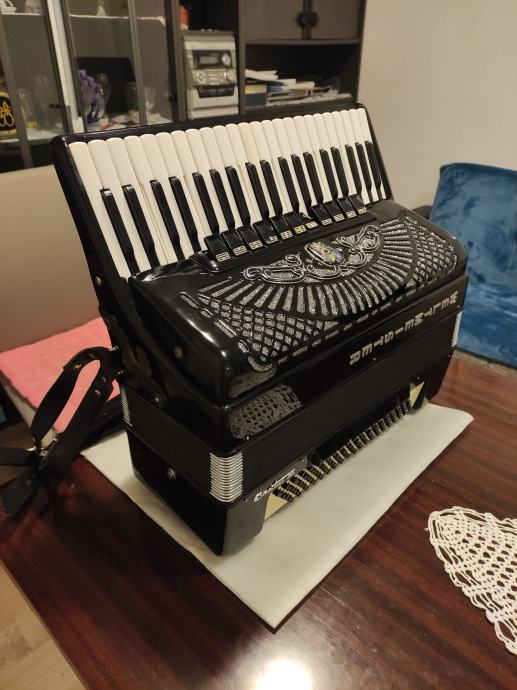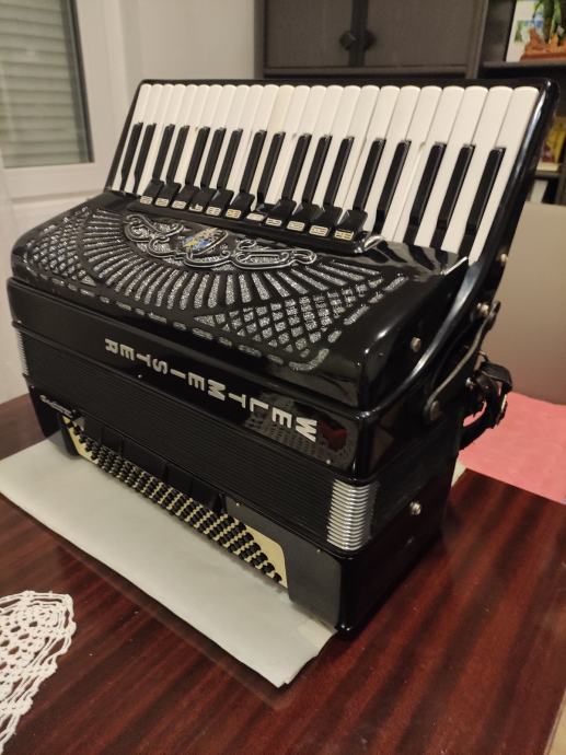 Mjeh dihta 100%. Svojim glasnim i prodornim tonovima parira puno skupljim harmonikama. Tonovi su prve klase (bugari).