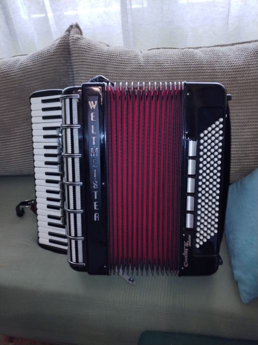 Harmonika Weltmeister Cantus IV deluxe, uz Supitu najbolji model koji je izašao iz Weltmeister-a, Harmonika je 4-glasna , u lijevoj i desnoj ruci, sa talijanskim tonovima, dupla kabina (2+2). Težina 12kg.Usčuvana ispravna 100%, dihtacija i tonovi. Prodaje se sa koferom.