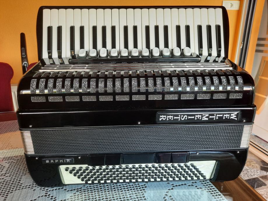 Harmonika WELTMEISTER SAPHIR, četveroglasna, 120 basova, 11+5 registara, sa koferom, tonski, mehanički, estetski,kao novo, prodajem, kontakt 098 263 290