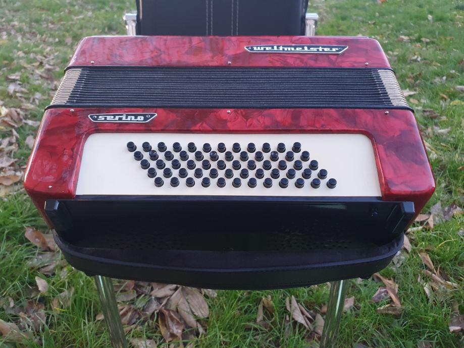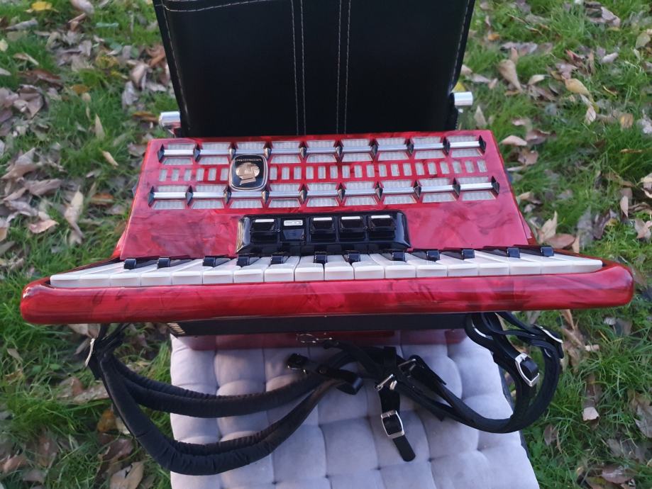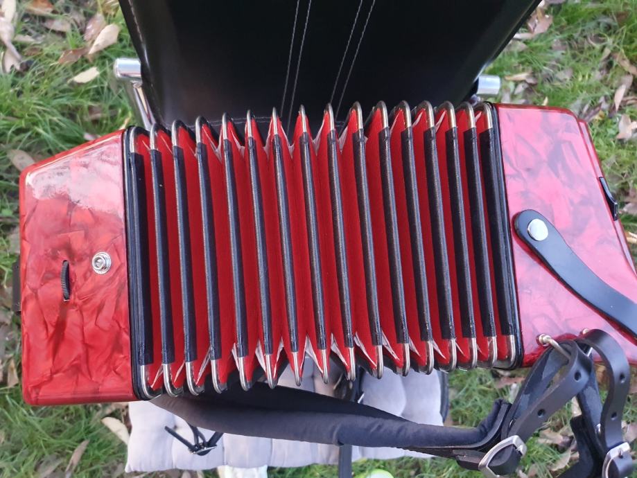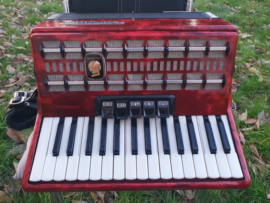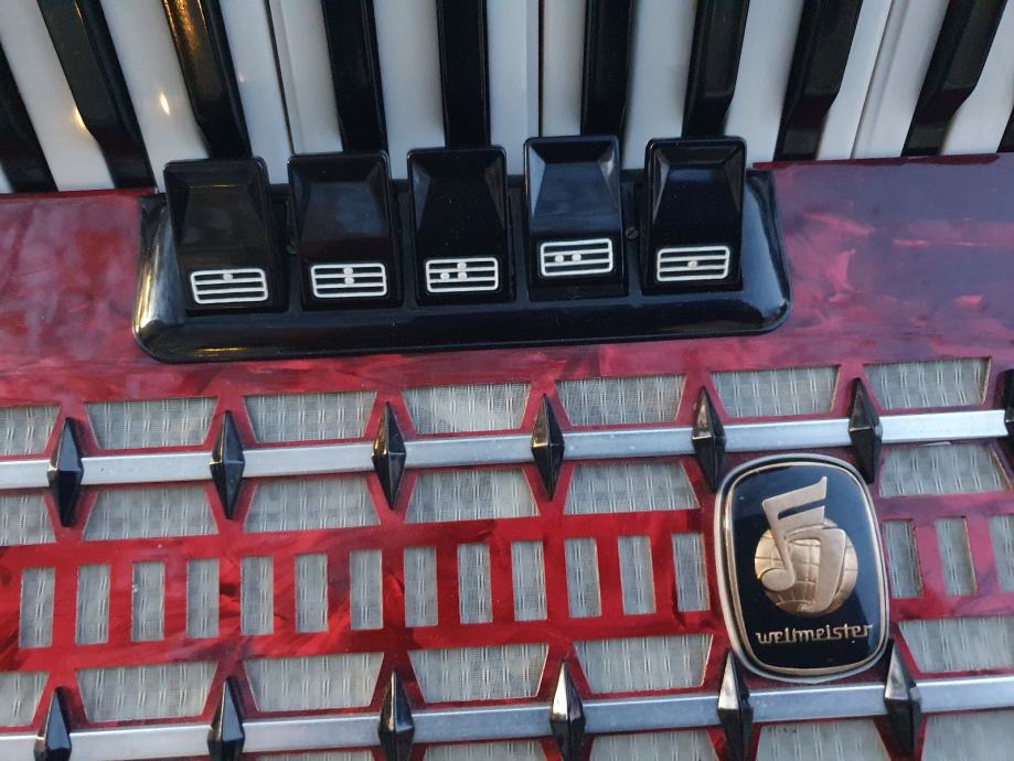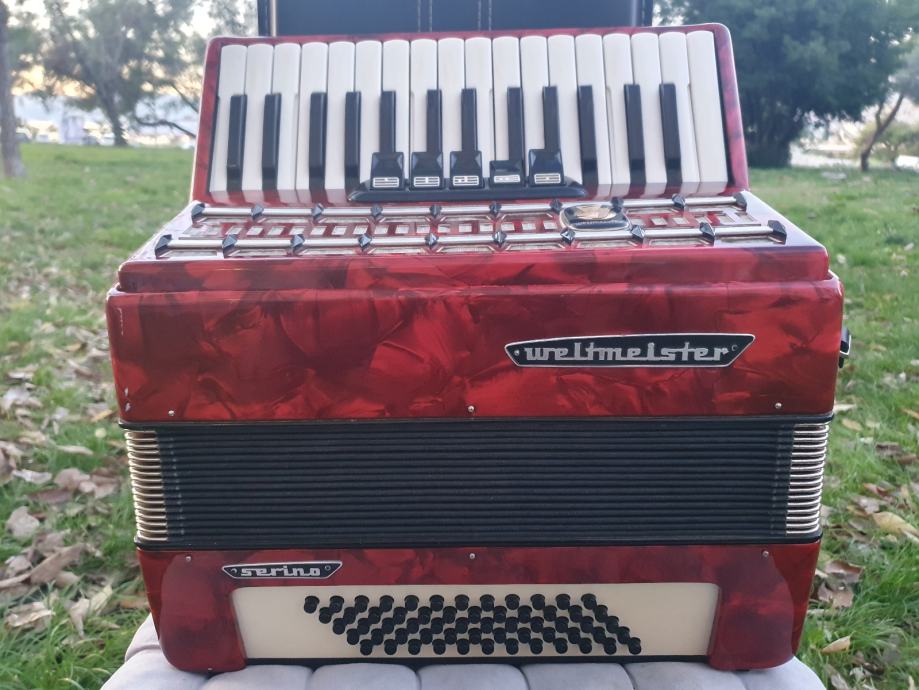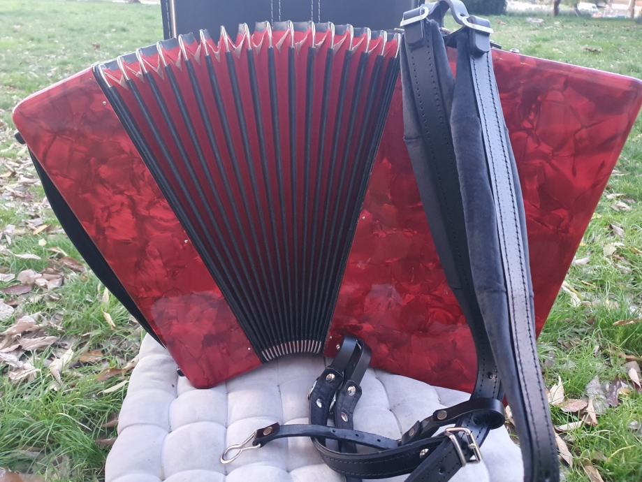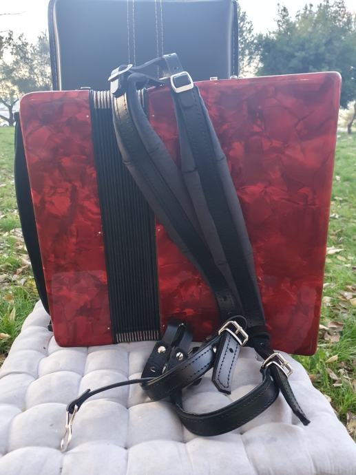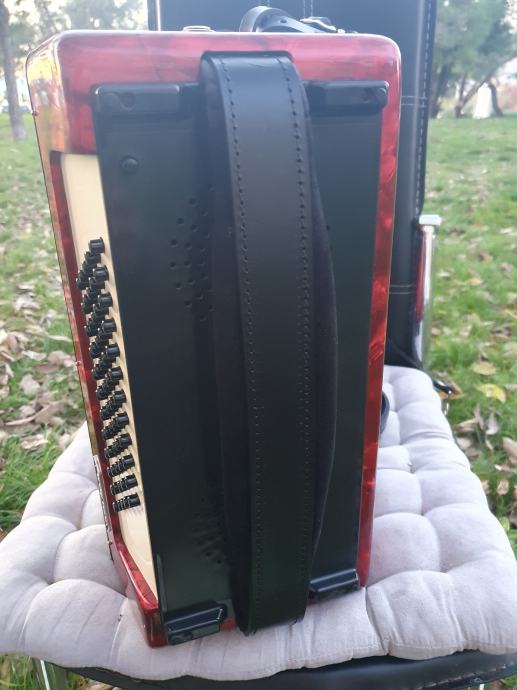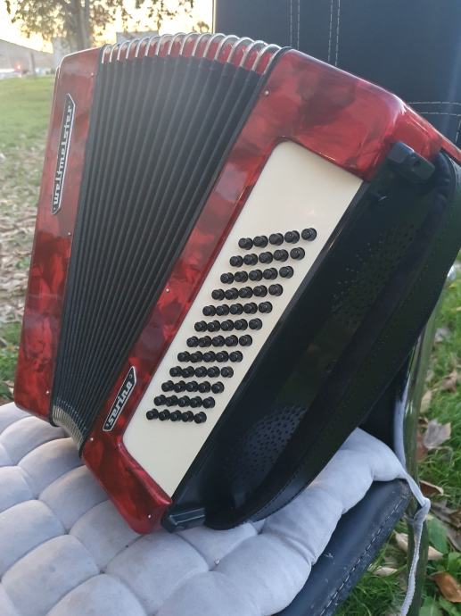 Original njemacka harmonika,ocuvana kao nova iz ducana,prekrasno zvuci.Ima 60 basova,5 registara u primu,30 tipki na klavijaturi.Idealna za pocetnike i mladji uzrast,kojima je harmonika od 80 basova prevelika,a harmonika od 40 basova premalena.Na harmoniku sam stavio nove italijanske remene (basni+ledjni).Harmonika ima svoju novu čvrstu torbu,koja se moze nositi u ruci ili na ledjima.Ovu lipoticu od instrumenta mozete kupiti u Splitu.Sve informacije na tel.097/6476049 (viber,whatsup),Mladen! Sretna kupovina!