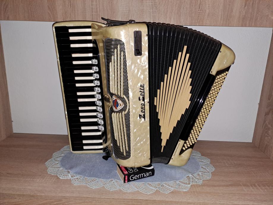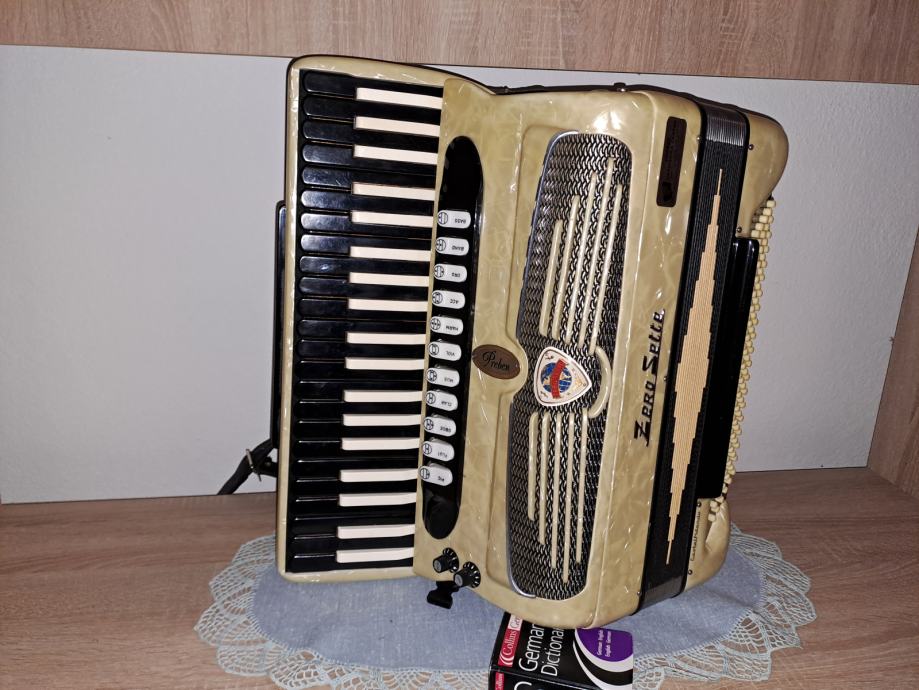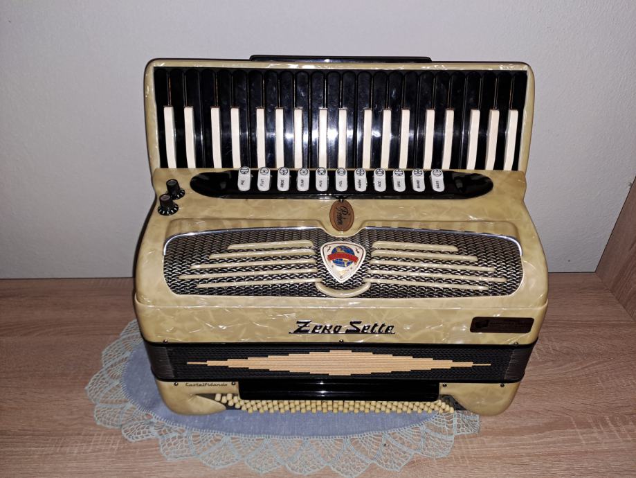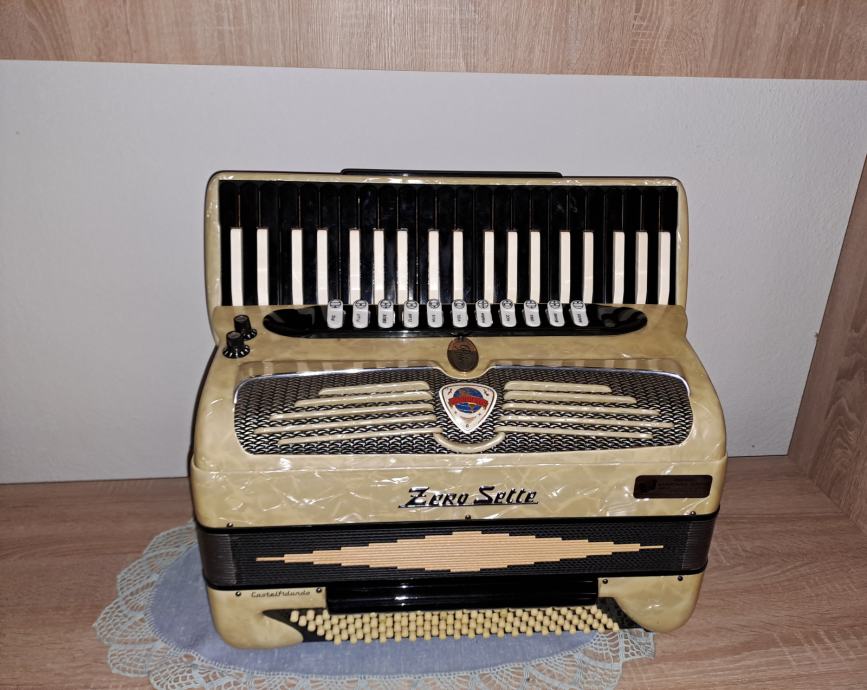 Prodajem orginal talijansku harmoniku zero sette 3+2 dupla kabina ! Nije teška 12.5kg s remenima ..
