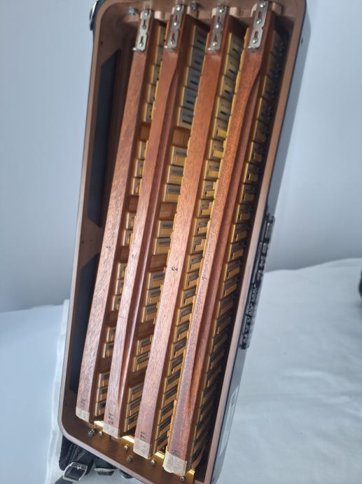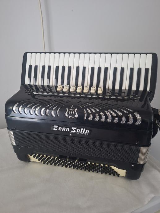 Na prodaju klavirna četveroglasna harmonika Zerro Sette S20 Mussette u fantastičnom stanju kako tonski tako i tehnički,garantiram da basson i clarinet izlaze kao da je kabinska!Nigdje ogrebotine,savršeno očuvana a proizvedena početkom 80.g Samo jedan vlasnik i nikada nije bila u dimu samo kućna svirka!Plitka i mekana tipka,dihtacija 100%!!!Četveroglasna u primu sa 7 registara i peteroglasna u basu sa 3 reg.Uz harmoniku ide orig. kofer!!!!Pogledajte moje ostale oglase!Samo originali!!!!!