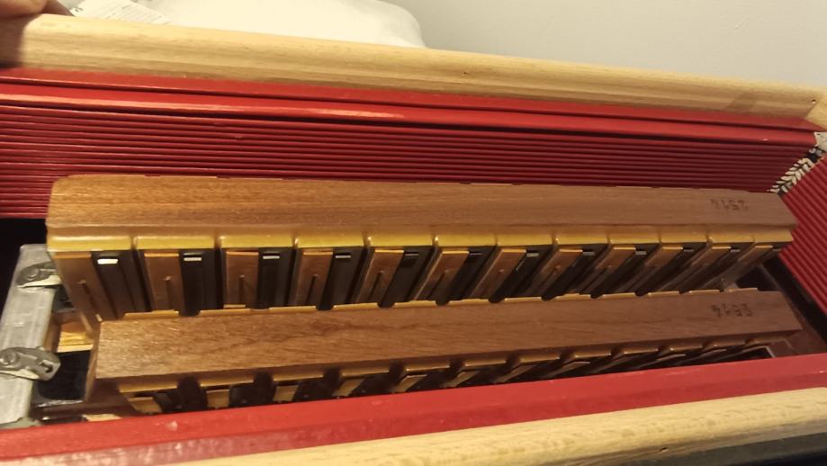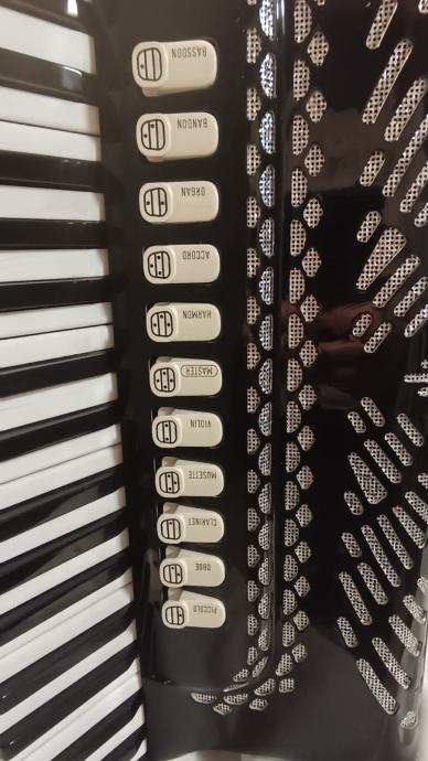 Na prodaju Zerro Sette B22 četveroglasna harmonika u odličnom stanju i tehnički i vizualno!Tonski jako dobra,mehanika odlična,dihtacija jako dobra! 11 registara plus master u primu te 5 reg.u basu