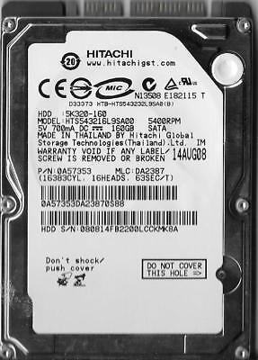 160GB HITACHI 5K320-160 HTS543216L9SA00 SATA 5400RPM 2.5" HDD
