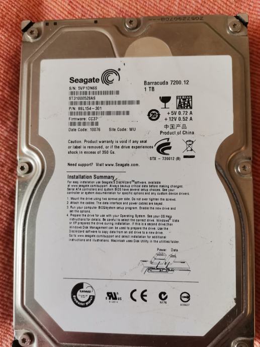 Seagate BarraCuda 7200.12 ST31000528AS 1TB 7200 RPM 32MB Cache SATA 3.0Gb/s 3.5" Internal Hard Drive
