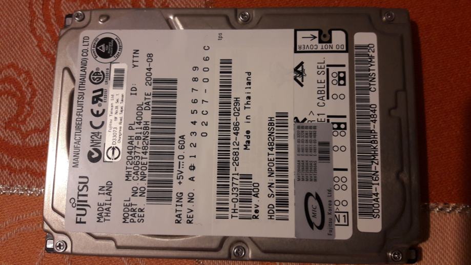 Prodaje hard disk za laptop ili mini računalo, Fujitsu 2.5" kapaciteta 40 GB, konektor PATA (EIDE) ATA IDE