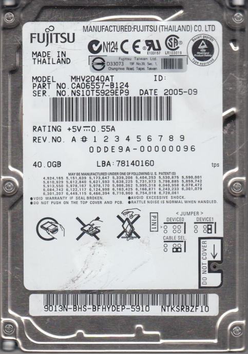 FUJITSU-MHV2040AT-HDD IDE PATA -2,5" NOVO GARANCIJA