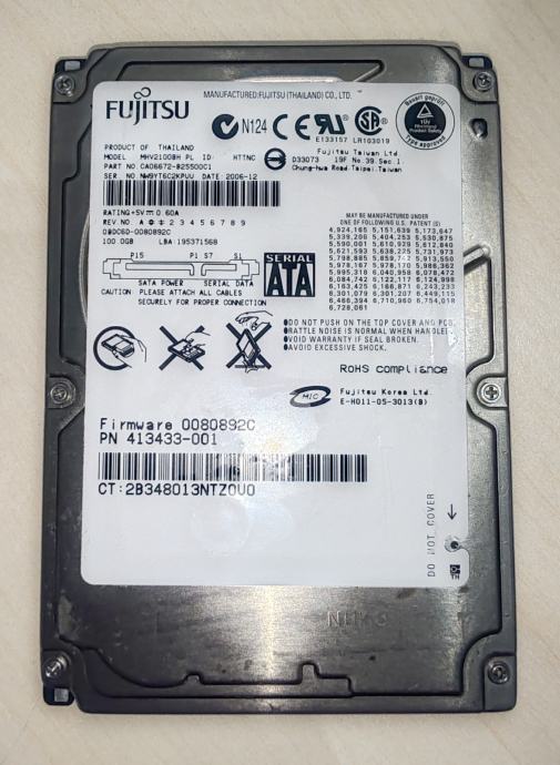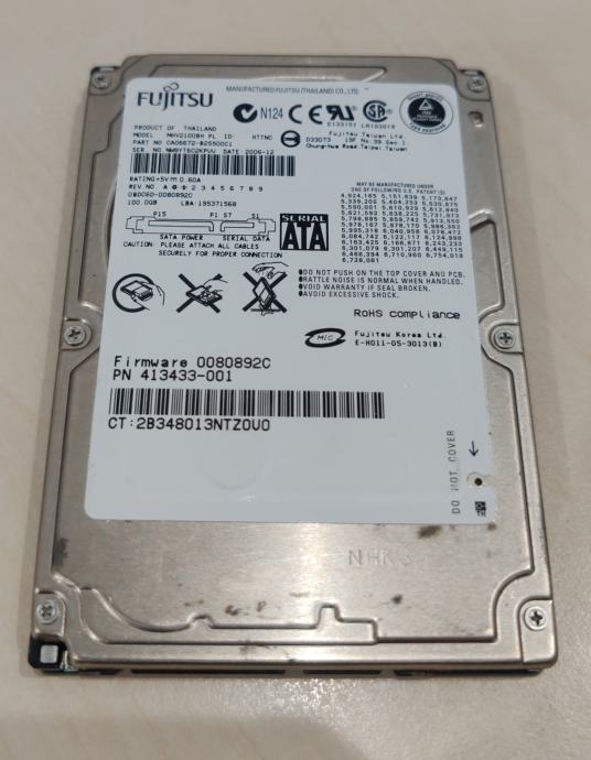 Fujitsu MHV2100BH 100GB 2.5" SATA HDD Tvrdi Disk za Laptop