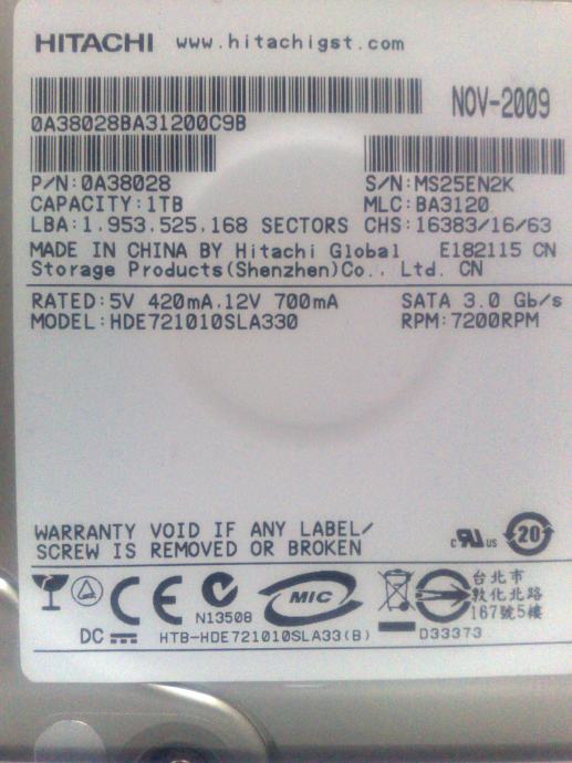 # 6TB (6x 1TB) Hitachi HDE721010SLA330, SATA II, 7200 o/min