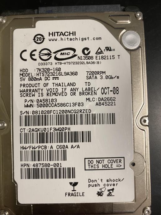 Hard disk 2,5" 160GB, SATA, 7200rpm