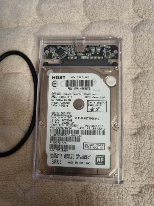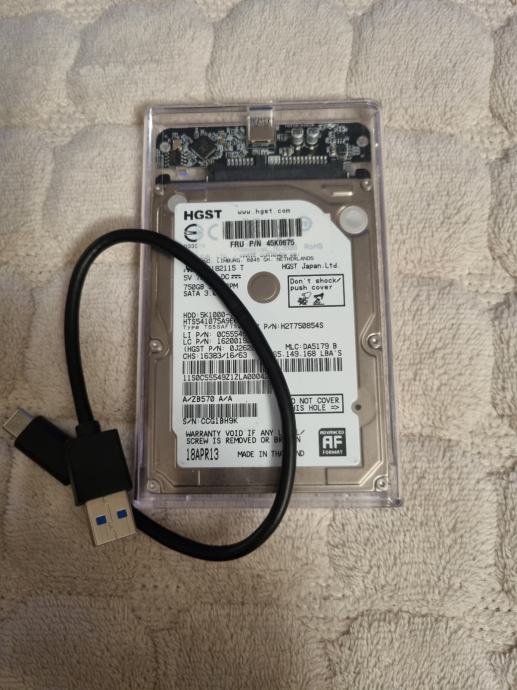 Vanjski HDD 750GB malo korišten, formatiran, koristi c kabel