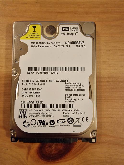 Hard disk Sata 2.5 inca 160Gb WD, ispravan