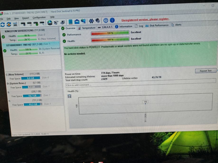 Disk je testiran i u ispravnom je stanju, što je vidljivo iz testnih rezultata. Model kombinira brzinu SSD-a s kapacitetom klasičnog hard diska zahvaljujući hibridnoj tehnologiji.