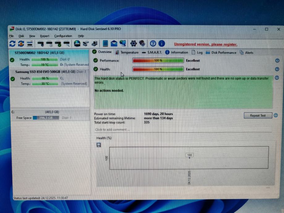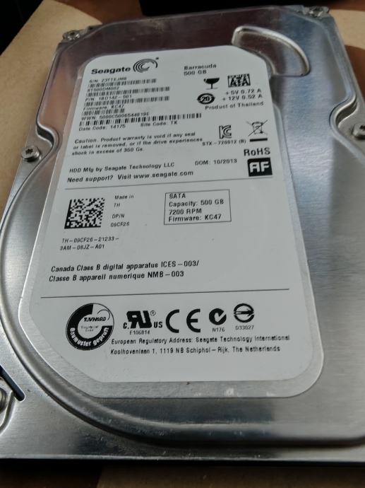 Prodajem rabljeni Seagate tvrdi disk kapaciteta 500 GB s 3.5 inčnim kućištem. Disk koristi SATA sučelje i u dobrom je radnom stanju kao što se vidi na dijagnostičkoj slici.
