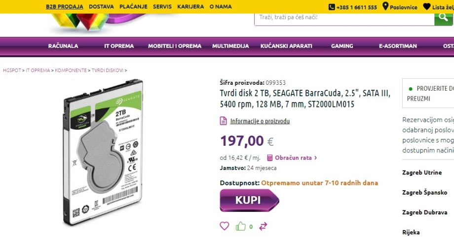 Hard disk je iznimno malo korišten, te ukoliko je potrebno imam i kučište za njega sa usb kabelom