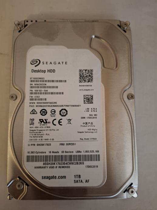 HARD DISK SEAGATE ST1000DM003 1TB 64MB 7200