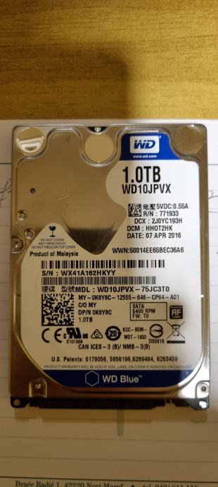 Hard disk WD 1 TB 2.5 ". 5400 RPM.