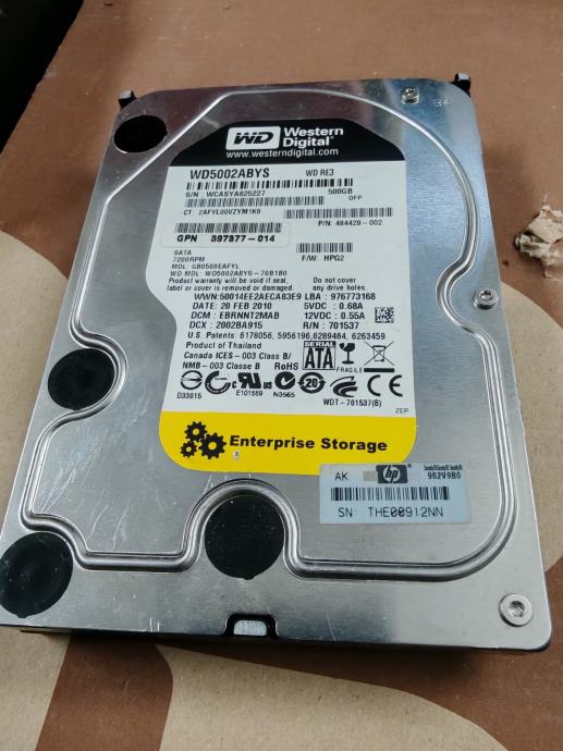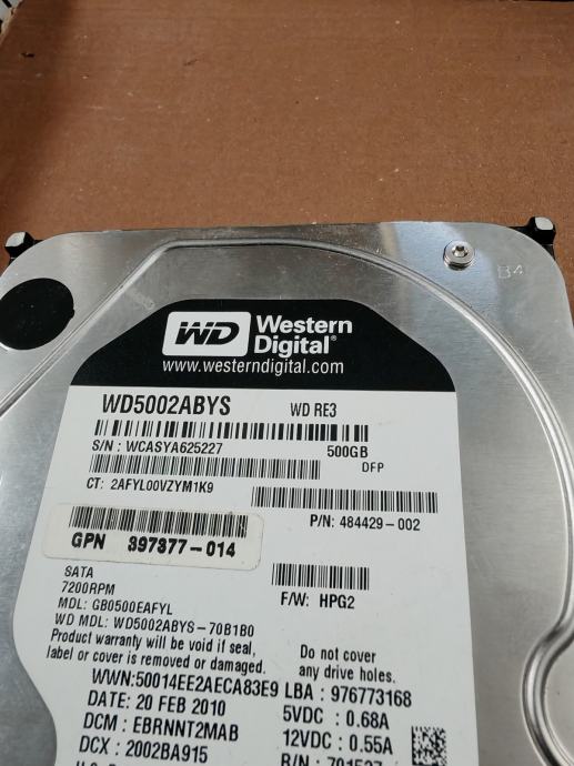 Prodajem rabljeni Western Digital Black tvrdi disk kapaciteta 500 GB s 3.5 inčnim formatom. Disk koristi SATA sučelje i usprkos korištenju još uvijek je u funkcionalnom stanju.