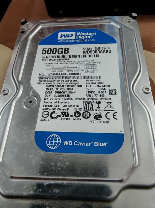 Prodajem rabljeni Western Digital Blue tvrdi disk kapaciteta 500 GB s 3.5 inčnim kućištem. Disk koristi SATA sučelje za povezivanje i idealan je za nadogradnju starijeg računala ili kao dodatni prostor za pohranu podataka.