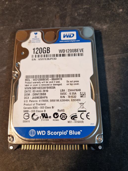 HDD 2.5", PATA, 120 GB, WD, za laptop