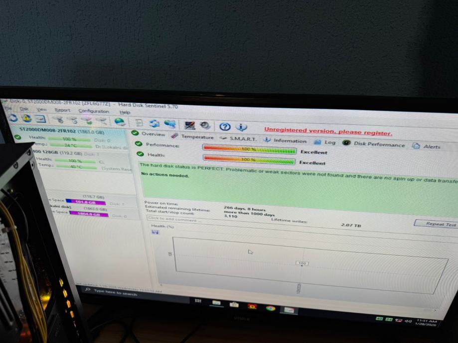 Disk je testiran i u potpunosti ispravan, bez loših sektora – svi parametri zdravlja su u urednom stanju.