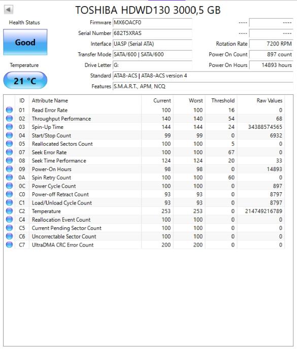 Odličan disk. Korišten kao cold storage na polici, jako malo radnih sati. Bez ikakve greške i ono najvažnije - nije SMR, nego CMR.