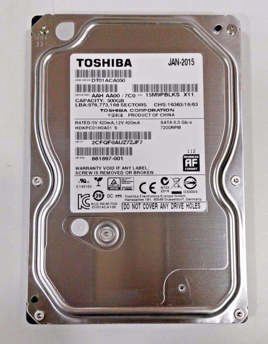 1.Toshiba čvrsti disk DT01ACA050, 500GB, SATA, SATA3, 7200rpm, 32MB cache, 3.5"
