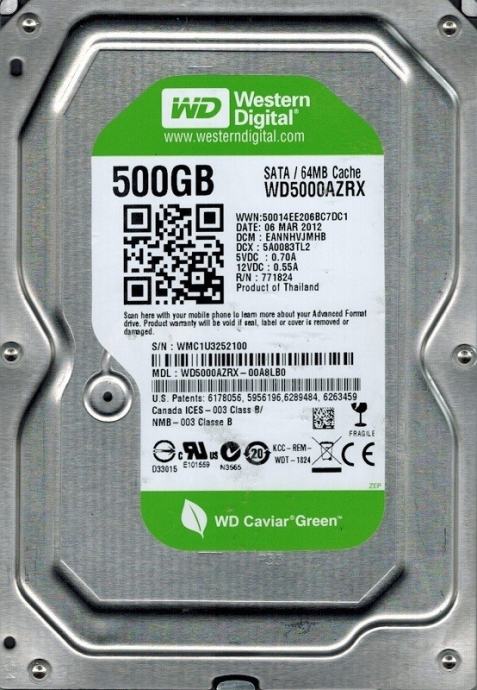 2. Western Digital čvrsti disk Green WD5000AZRX, 500GB, SATA, SATA3, 7200rpm, 64MB Cache, 3.5"