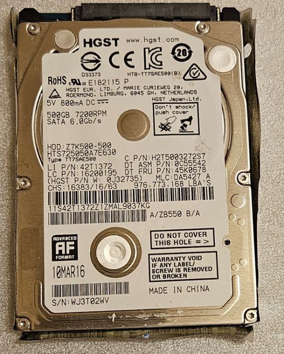 prodajem Hitachi HDD HGST HTS725050A7E630 500GB 2,5" 7200rpm