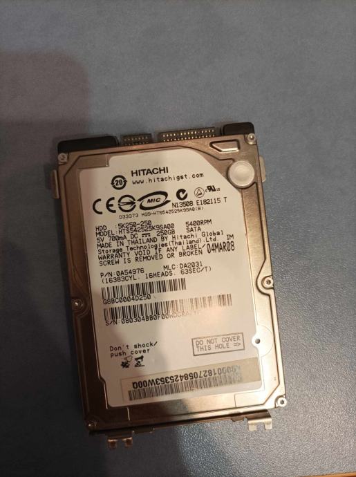 HDD Hitachi 250GB SATA, ispravan, korišten
