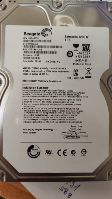 HDD SEAGATE 1 TB 7200 rpm, 5 kom