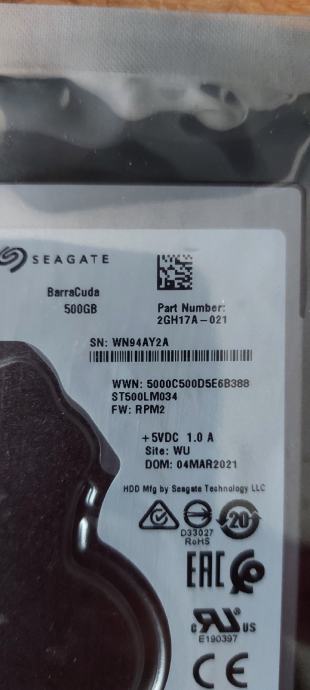 HDD SEAGATE BarraCuda 2.5" 500GB - NOVO!