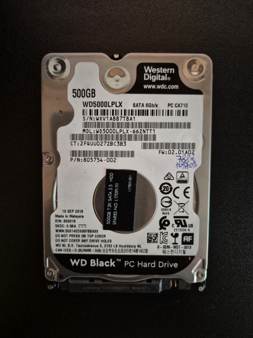 HDD WD BLACK 500GB 7200RPM 2.5".