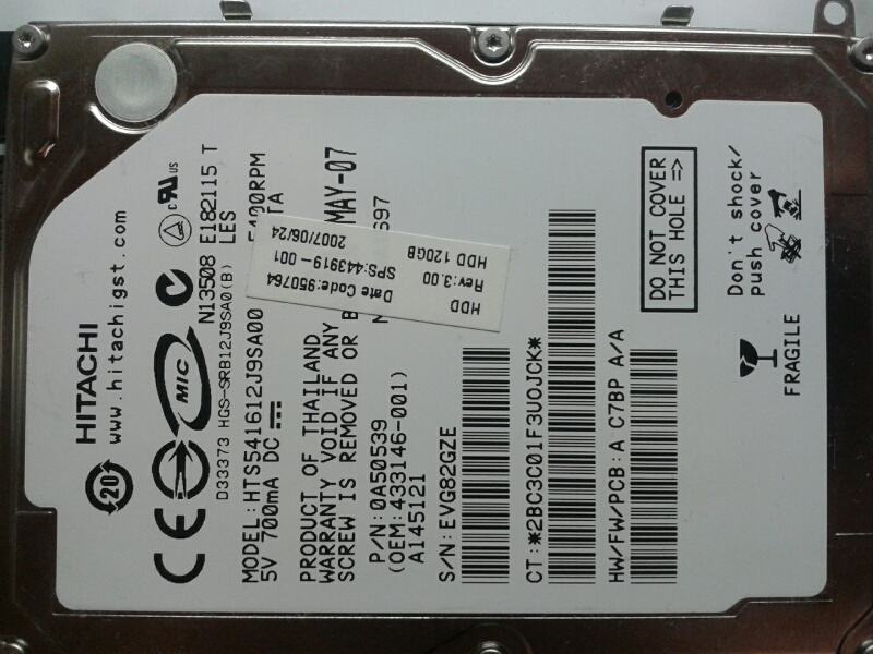 Prodajem NEISPRAVAN navedeni disk Hitachi HTS541612J9S HDD 2,5'' 120GB,ima dosta bad sector-a.