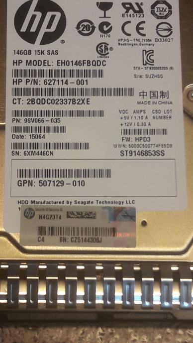 HP 2,5" 146 GB 15k SAS, 300GB, 600GB, 6Gb/s ST9146853SS gen5,6,7,8 & 9