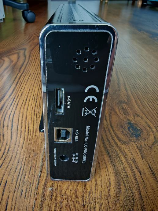 Povremeno korišteno, ispravno, u kompletu sa USB 2.0 kabelom, eSATA kabelom, stalkom za držanje i strujnim adapterom.