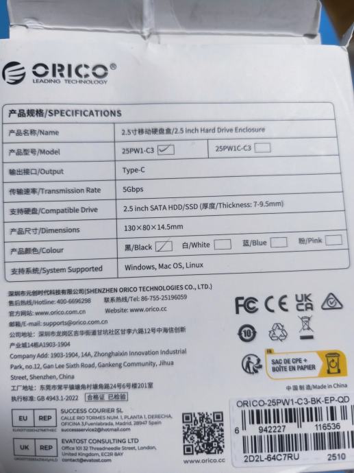 Kompatibilan sa sata HDD i sad, otvara se bez alata.